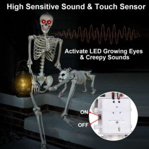 Halloween Skeleton Life Size Scary Posable Skull w/ Sound LED Glowing Eyes 5.5FT Leave a comment
